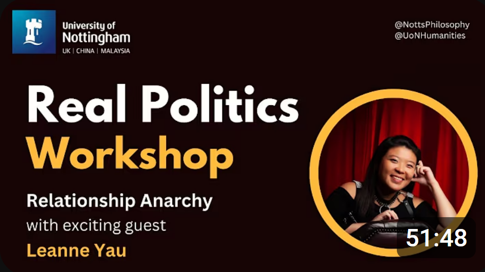Also, I spoke at the University of Nottingham this year on relationship anarchy - and the full lecture is available for free on Youtube. Watch here.